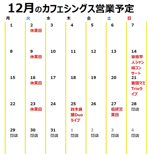 カフェシングスからのお知らせ